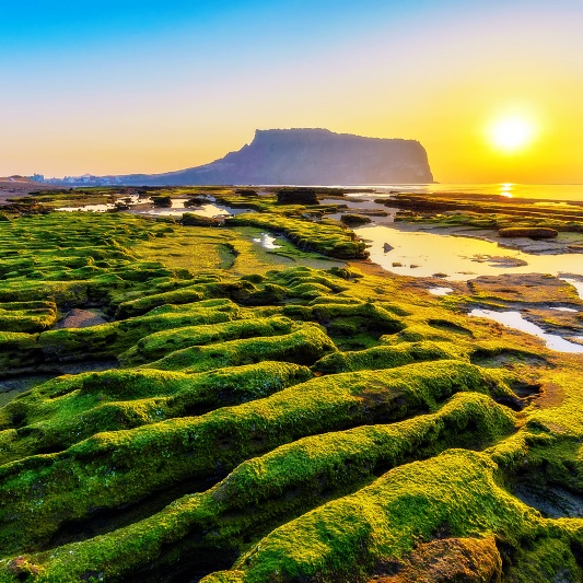 제주도 해녀의 고향, 성산일출봉. 그 중에서도, 성산일출봉에서의 일출은 일 년 내내 인기가 높다. 일출을 보는 이른 아침은 특별함이 배가된다. 한라산을 배경으로 하는 이곳은 제주도의 아름다움을 대표한다. 일출이 뜨는 그 순간마다 다채로운 풍경이 펼쳐진다.